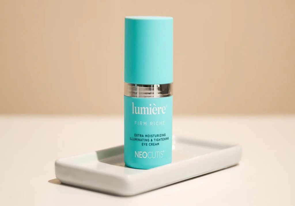 Every morning, I reach for Neocutis Lumière Eye Cream. It contains caffeine and growth factors, which help depuff and stimulate collagen. I keep it in the fridge so it feels extra soothing under tired lids.